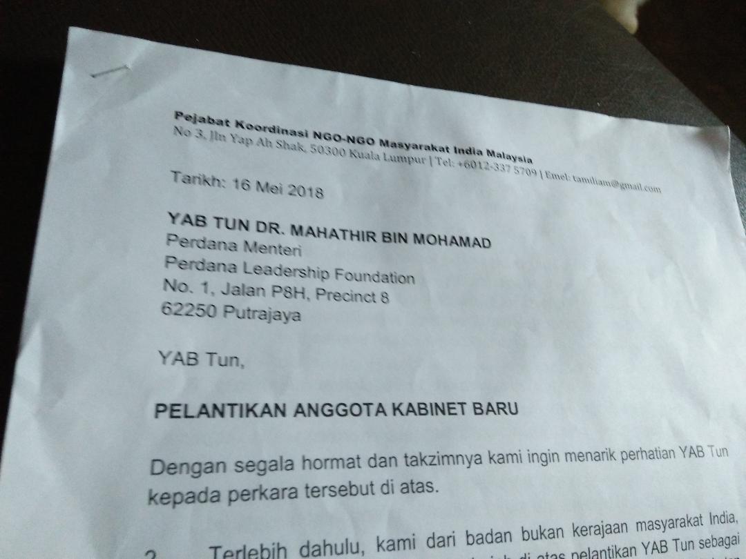 இக்கோரிக்கையை விடுத்த 14 முதன்மை என்ஜிஒ-களின் பெயர்கள் அக்கடிதத்தில் தெரிவிக்கப்பட்டுள்ளன. அவை: 1) S.P. Nathan, Presiden Educational, Welfare and Research Foundation; 2) S. Pasupathy, Pengarah MySkills Foundation; 3) Datuk Dr. Achaiah Kumar, Presiden Telugu Association of Malaysia; 4) Datuk Mohan Shan, Presiden Malaysia Hindu Sangam; 5) Ragahavan Annamalai, Presiden Yayasan Penyelidikan & pembangunan Pendidikan Tamil Malaysia; 6) Grish Ramachandran, Pengarah AMMA Foundation; (7) C. Arunkumar, Presiden Majilis Belia Hindu Malaysia (HYO); (8) Saravanan M. Sinapan, Presiden DHRRA Malaysia; (9) A. Radhakrishnan, Presiden Malaysia Hindu Dharma Mamandram; (10) Gunasekaran Karupaya, Presiden Pertubuhan Titian Digital Malaysia; (11) A. Ravendran, Presiden GOPIO Malaysia; (12) S. Thiagarajan, Timb. Pengerusi Persatuan Lempaga Pengelola Tamil Perak; (13) M. Ravanan, Penasihat Thirukkural Mandram; (14) Gunasegararan Kandasamy, Penasihat Hindu Youth Organsation of Port Klang.
