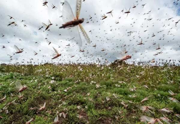 ஏப்ரல் மாதம் சோமாலியாவின் ஜூபா நதியின் படுகையில் பயிர்கள் செழிப்பாக வளர்ந்துள்ளன. இந்நிலையில், விவசாயப் பயிர்களை லட்சக்கணக்கான வெட்டுக்கிளிகள் சேதப்படுத்தி பேரழிவை ஏற்படுத்தி வருகின்றன. இதைத் தேசிய அவசர நிலையாக சோமாலிய அரசு பிரகடனப்படுத்தி உள்ளது.