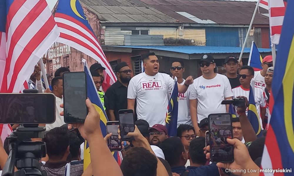 ஆகஸ்ட் 14 அன்று கெபாலா படாஸில் நடந்த கொடி பேரணியில் அம்னோ இளைஞர் தலைவர் டாக்டர் அக்மல் சலே பங்கேற்பாளர்களிடம் உரையாற்றுகிறார்(படம்).