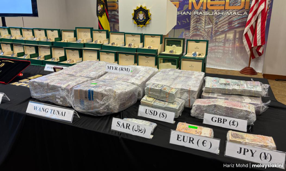 அதிகாரிகள் தங்கள் விசாரணையின்போது ரிம 11.4 மில்லியன் மதிப்புள்ள சொத்துக்களைப் பறிமுதல் செய்துள்ளனர், இதில் ரிம 4.4 மில்லியன் ரொக்கம், ரிம 2.3 மில்லியன் மதிப்புள்ள 26 சொகுசு கடிகாரங்கள், ரிம 2.5 மில்லியன் மதிப்புள்ள தங்கக் கட்டிகள் மற்றும் நகைகள் உள்ளிட்டவை அடங்கும்.
