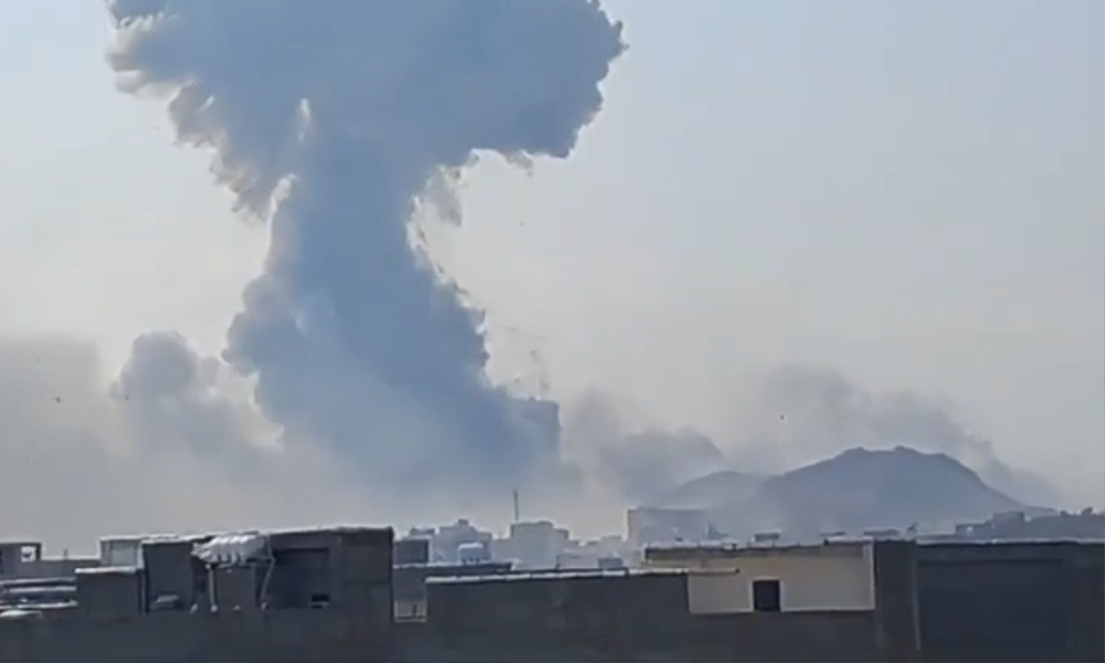 ஈரானில் வான்வழித் தாக்குதலைத் தொடர்ந்து குட்ஸ் நகரில் புகை மூட்டம் எழுந்துள்ளது.