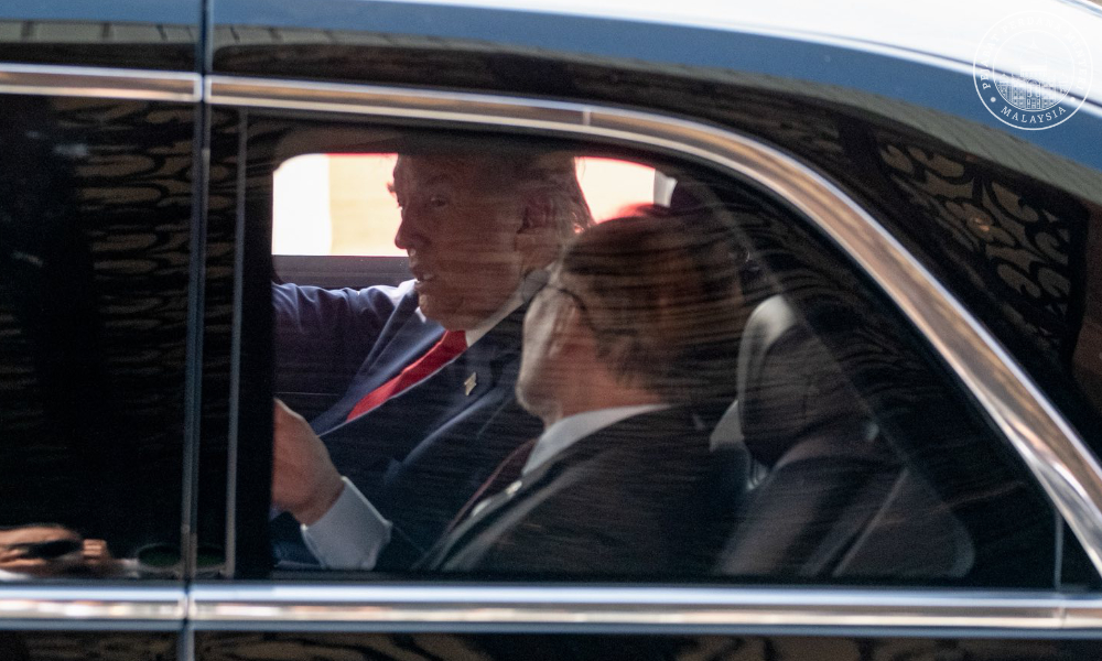 பிரதமர் அன்வார் இப்ராஹிம் மற்றும் அமெரிக்க அதிபர் டொனால்ட் ட்ரம்ப் ‘தி பீஸ்ட்’ வாகனத்தில்.