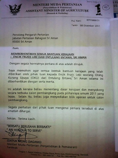 ஆகவே பூருஸிஸ் எதிர்க்கட்சி ஆதரவாளர் என்பதால் அவருக்கு வழங்கப்பட்ட உதவியை நிறுத்துமாறு கடந்த ஆண்டு டிசம்பர் மாதம் ஸ்ரீ அமான் விவசாயத் துறைக்கு மொங் ஆணை பிறப்பித்த கடிதம் பூருஸிஸுக்கு வழங்கப்பட்ட உதவி நிறுத்தப்பட்டதற்கான காரணம் அல்ல,” என்றார் ஹாட்சிர்.