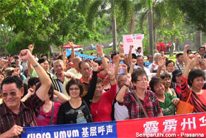 சீனமொழியை கற்காத ஆசிரியர்களை தங்களுடைய சீனப்பள்ளிகளுக்கு அனுப்ப வேண்டாம் என்று அரசாங்கத்திடம் இன்று கேட்டுக்கொள்ளப்பட்டது. பலத்த எதிர்பார்ப்பும் பரபரப்பும் கொண்ட சுமார் 10,000 மக்கள் நிரம்பிய டோங் ஜோங் (DONG ZONG)) காஜாங் கல்லூரி வாளாகத்தில் உரையாற்றிய சீன அமைப்புகளின் முக்கிய தலைவர்கள் இந்த வேண்டுகோளை விடுத்தனர். (மேலும் படங்கள்)