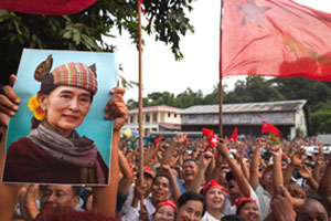 ஆங் சான் சூசி தலைமையிலான என்எல்டி என்ற ஜனநாயகத்துக்கான தேசிய லீக் கட்சி இரண்டு தசாப்தங்களின் பின்னர் இப்போது தான் தேர்தலொன்றில் போட்டியிட்டுள்ளது.
