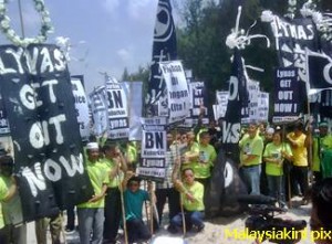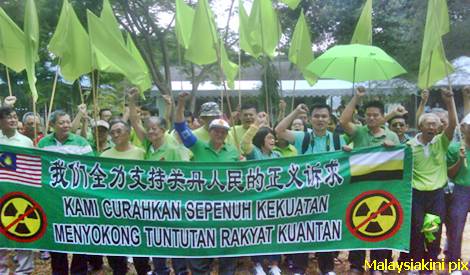 ஹிம்புனான் ஹிஜாவ் தலைவர் வோங் தாக் வழி நடத்த பச்சை நிற ஆடை அணிந்திருந்த கூட்டத்தினர் ‘லினாஸை நிறுத்துங்கள், லினாஸ் வெளியேறு’ என்ற வாசகங்களைத் திரும்பத் திரும்ப முழங்கினர்.