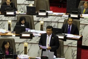 ரிம10மில்லியன் என்பது ஒரு மதிப்பீடுதான். வருமான வரி வாரியம் வரிப்பணம் பற்றித் தகவல் அளிக்க மறுத்துவிட்டது என்று கூறிய காலிட்(நிற்பவர்) சிலாங்கூர் மக்களின் வருமானத்தின் அடிப்படையில் அந்த மதிப்பீடு செய்யப்பட்டது என்றார்.